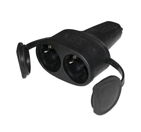 Plug Schuko Double Female Black IP44